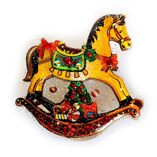Vintage Weihnachtsbrosche mit Dame und roter Standuhr