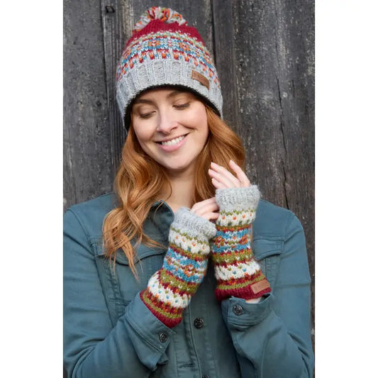 Iona - Handgestrickte dicke Wollhandschuhe im Fair-Isle-Stil ohne Finger