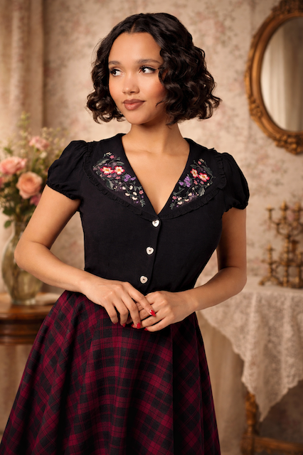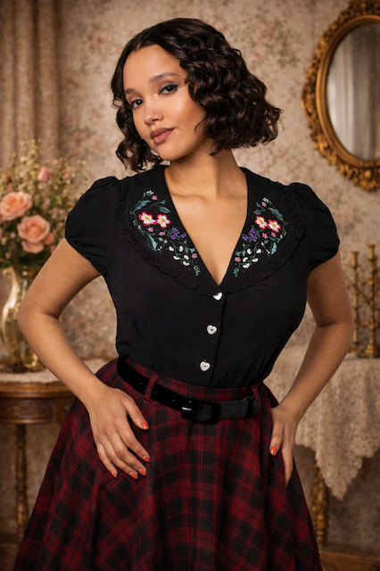 Hier findest du frisch eingetroffene Vintage-inspirierte Mode für Damen und Herren – von eleganten Swing Pants über charmante Blusen bis hin zu Dandy-Jacken.