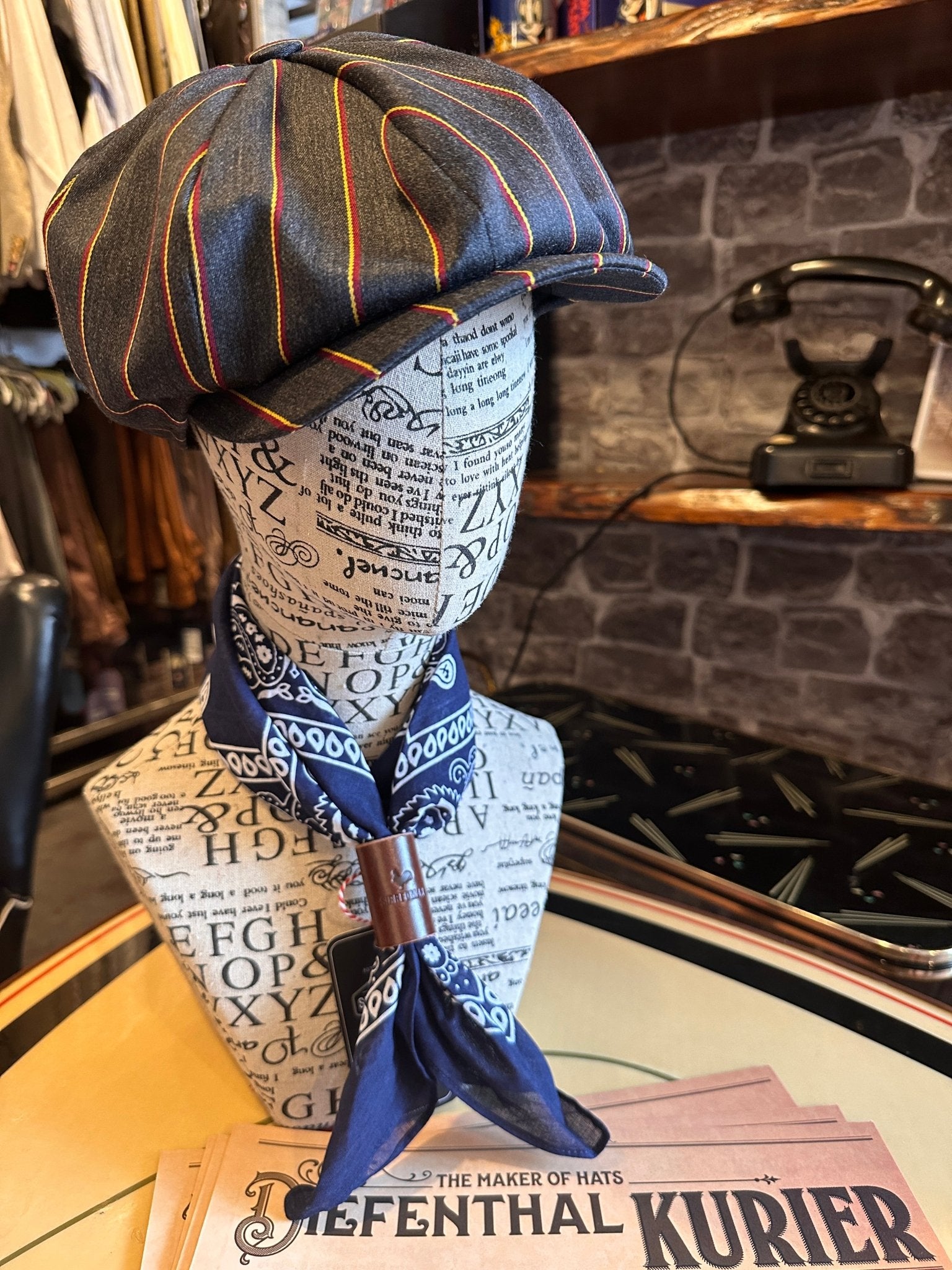 The 1905 BIGBOY CAP is like the superhero among hats! With its fixed peak that can be adjusted and the cozy round head that is sewn together from eight parts, it steals the show. A button as a chic detail rounds it off. The fabric is as cool as denim, only softer, and the dark blue design is spiced up with burgundy and yellow stripes.