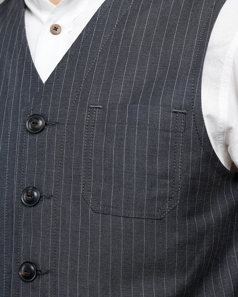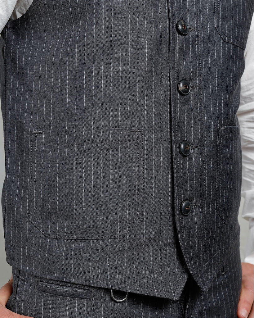 The Pike Brothers 1937 Roamer Vest is a real highlight for every fashion-conscious man. The light summer version made of 45% wool and 55% linen guarantees a comfortable fit. The fabric, woven exclusively for Pike Brothers in Portugal, impresses with its elegant look and gives every outfit that certain something extra.