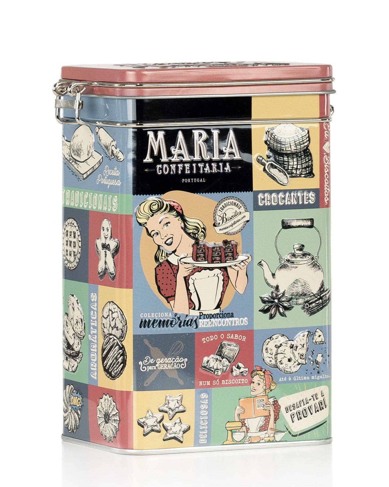 • In dekorativer Vintage-Blechdose mit Retro-Illustrationen