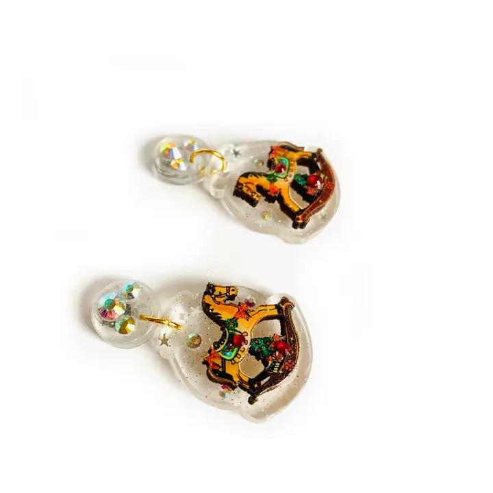 Vintage Schaukelpferd Ohrringe aus Resin mit Glitzer