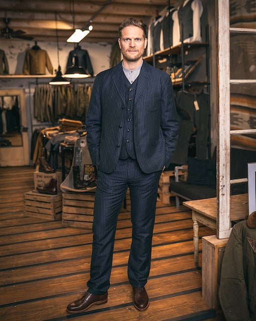 Die Pike Brothers 1927 Harvester Jacke ist die perfekte Begleitung für den Sommer. Die Jacke ist halb gefüttert und hat drei Taschen an der Vorderseite. Der Chicago blue Stoff hat ein Flächengewicht von 220g und besteht aus 55% Leinen und 45% Wolle. Sie wird exklusiv in Portugal für Pike Brothers gewebt.