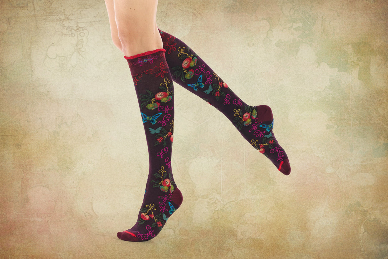 - Vintage-inspirierte Kniestrümpfe mit floralem & barockem Muster