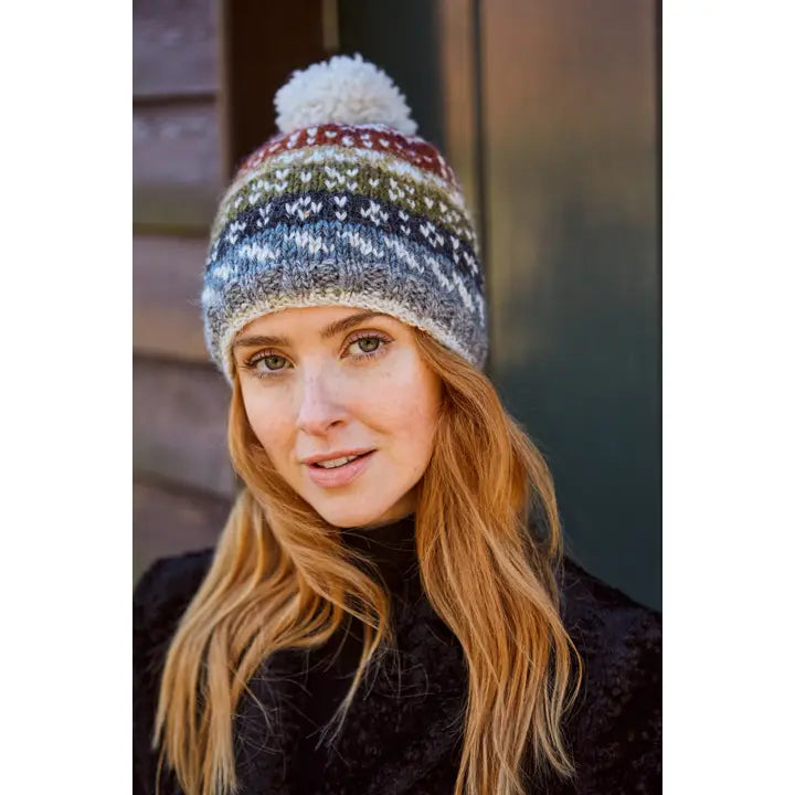 Das kräftige Fair-Isle-Muster mischt erdige Naturtöne mit soften Winterfarben. Und weil jede Mütze von Hand gestricktwird, bekommst Du immer ein kleines Unikat. Das Fleece an der Stirn sorgt dafür, dass Du nicht frierend durch die Gegend läufst – selbst wenn der Wind im Barnim mal wieder meint, er müsse sich beweisen.
