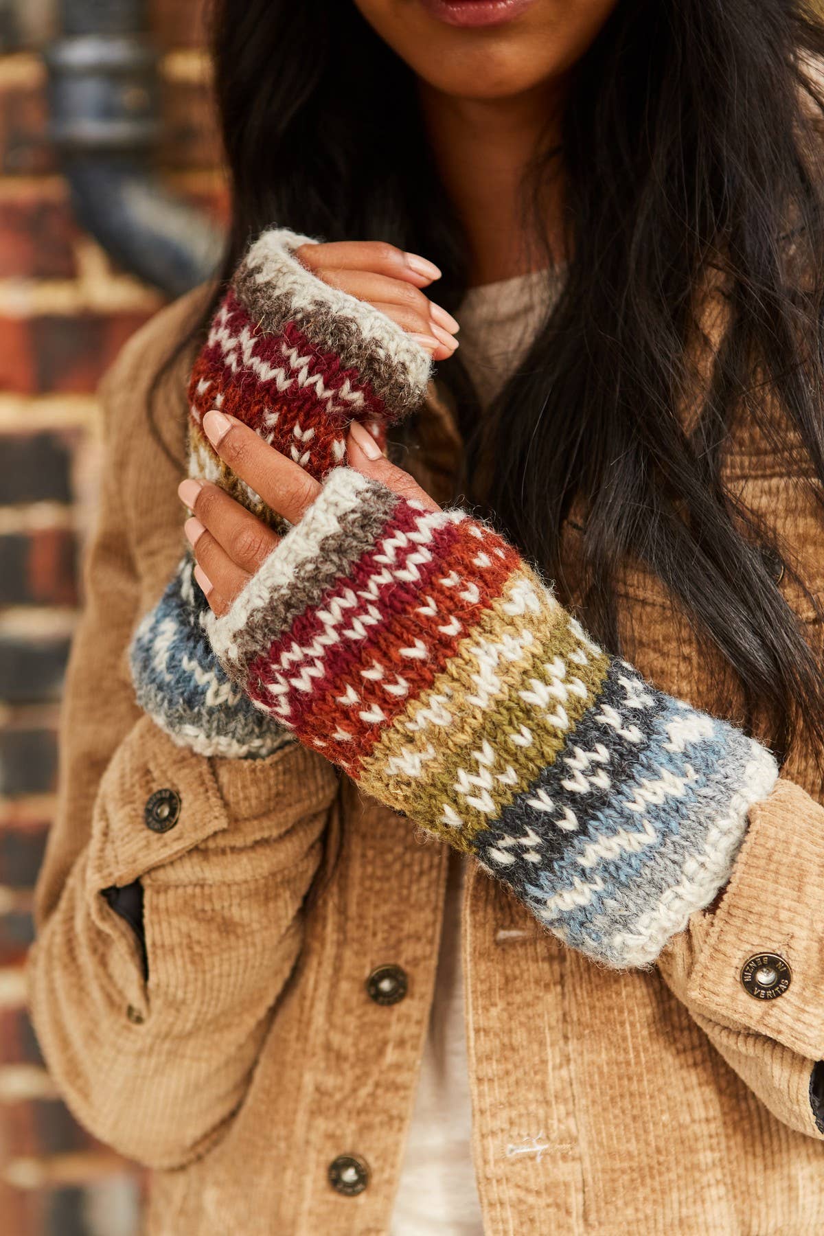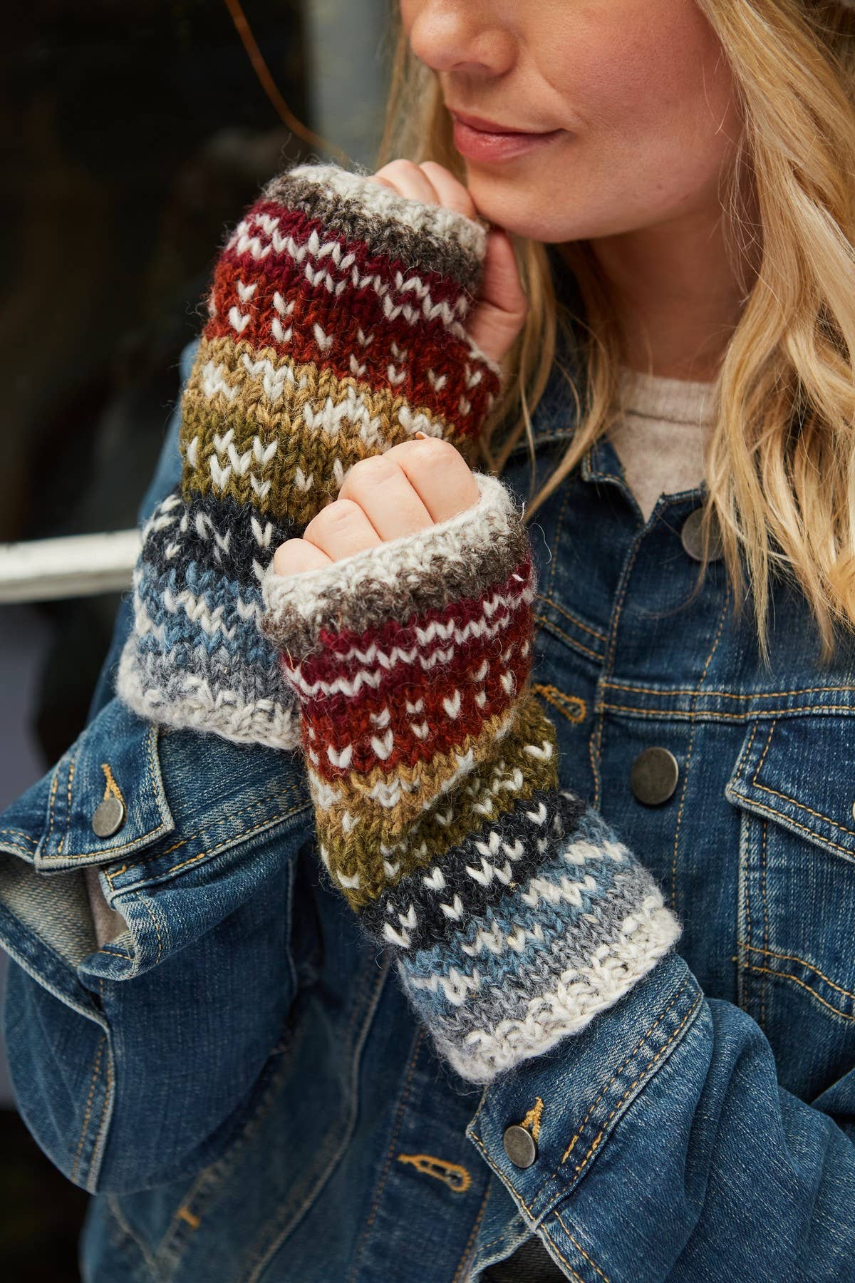 Helmsdale Handwärmer — Eine gewagte, erdige Auswahl an Fair-Isle-Mustern, die zu jedem Outfit passen. Die Farben werden immer die gleichen sein, aber Muster und Reihenfolge können je nach Stricker leicht variieren, sodass jedes Stück ein Unikat ist!