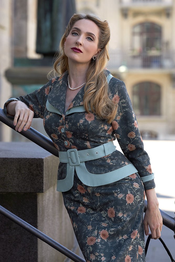 Reiße die Blicke auf dich! Das fabelhafte Herma Lee Stretch Samt Kleid von Miss Candyfloss ist ein weicher, floraler Hingucker, der Dich zu jeder Gelegenheit froßartig aussehen lässt. Verwandle Dich in eine Grazie mit High Heels oder stolziere lässig mit flachen Schuhen durch die Straßen.