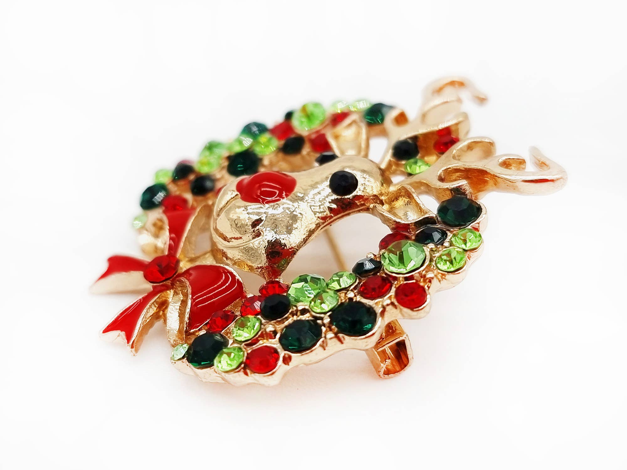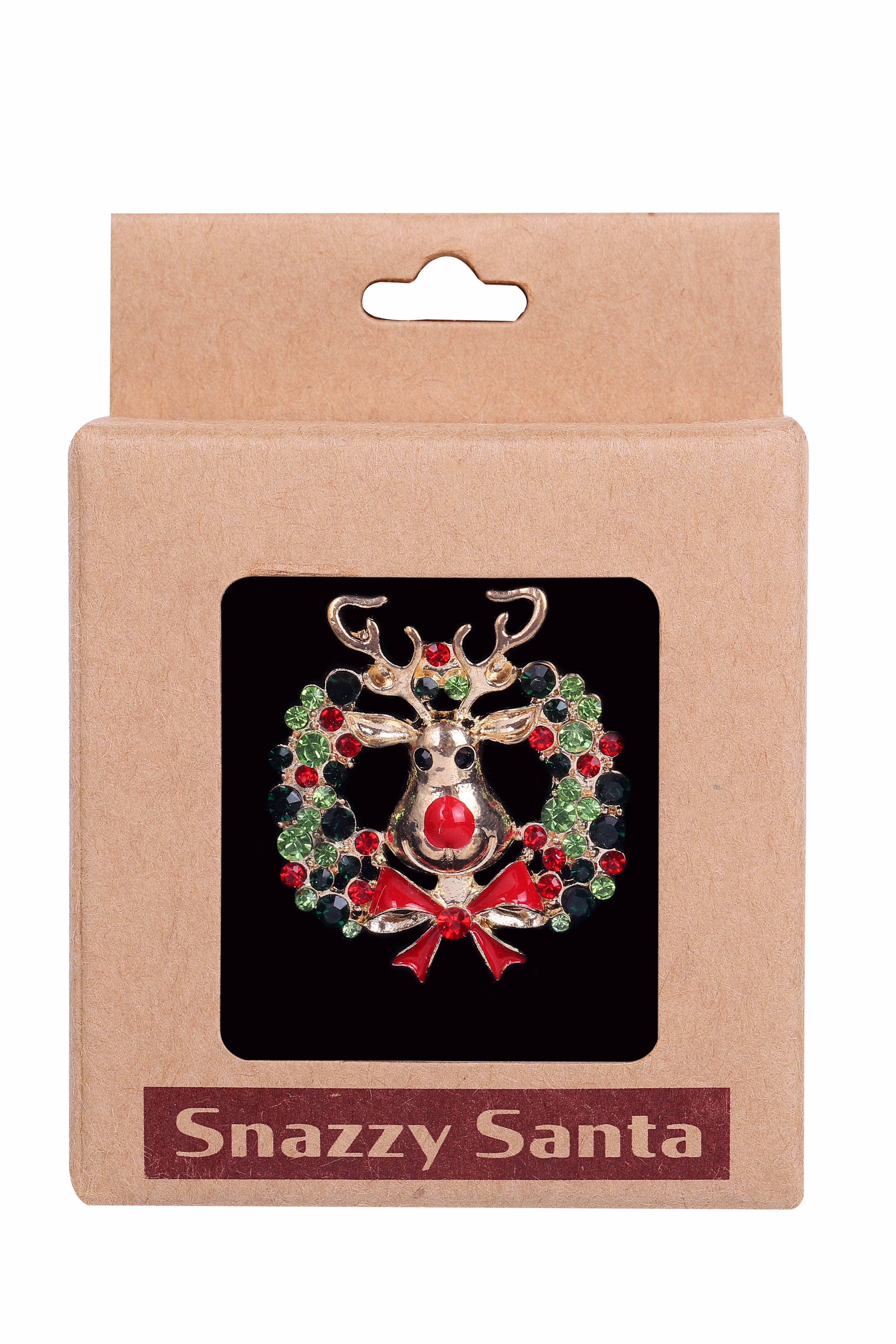 Weihnachtsbrosche „Rudolph im Kranz“